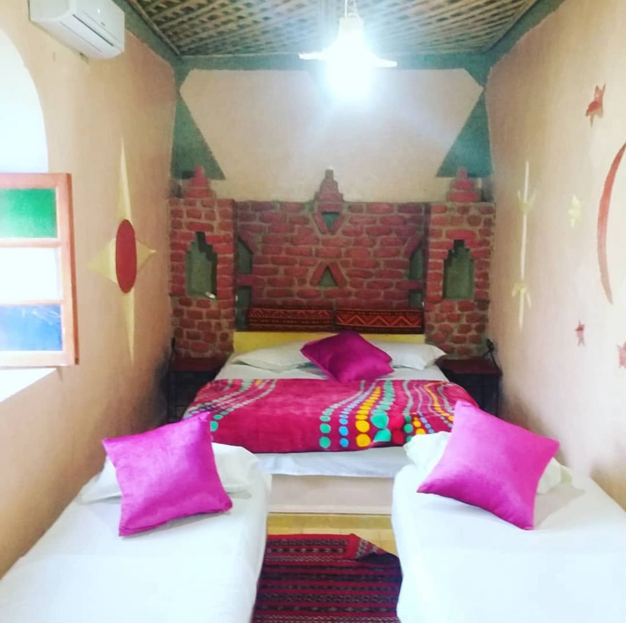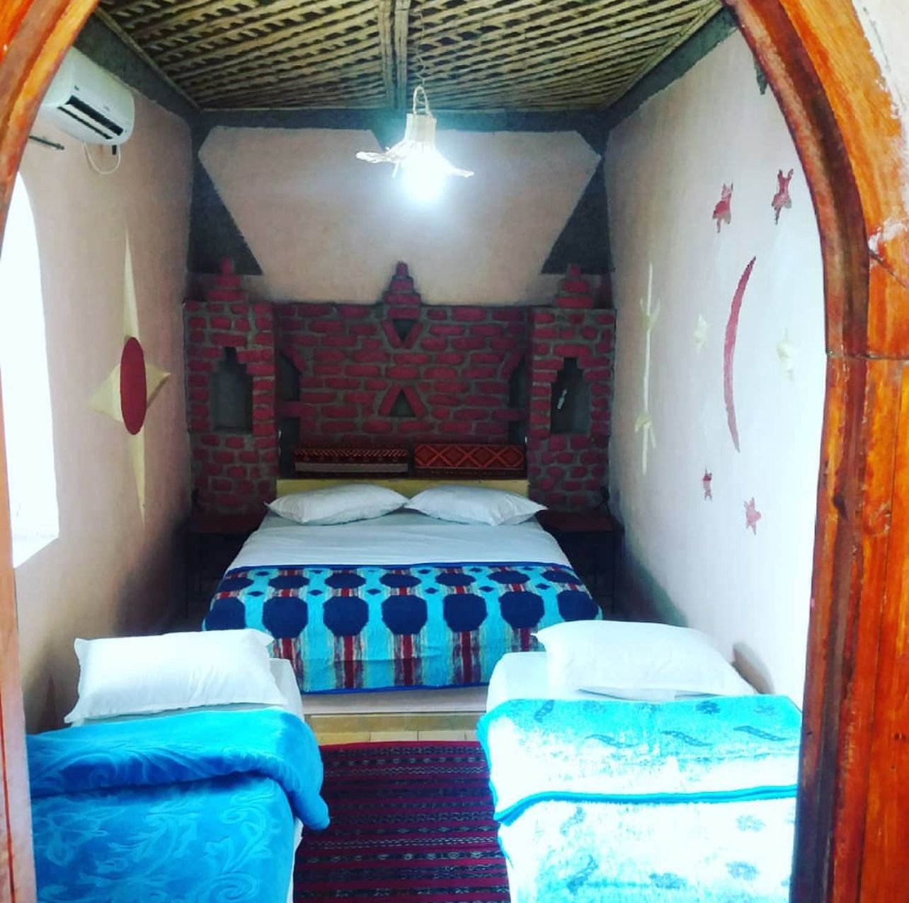Profitez d’un espace reposant et décoré avec soin. La Chambre single offre une ambiance chaleureuse avec un mélange harmonieux de confort moderne et de charme marocain.